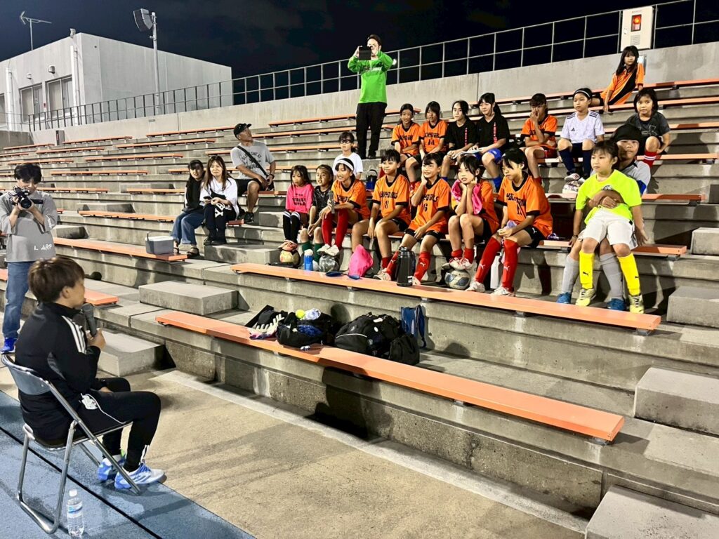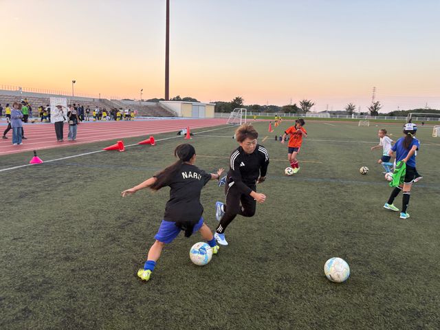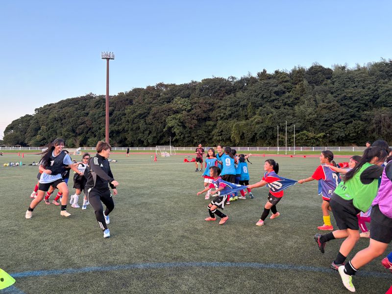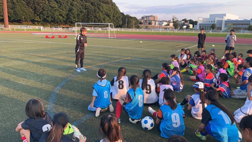 練習では宮間あやさんのスピードに圧倒されながら、みんな全力でプレーしていました!